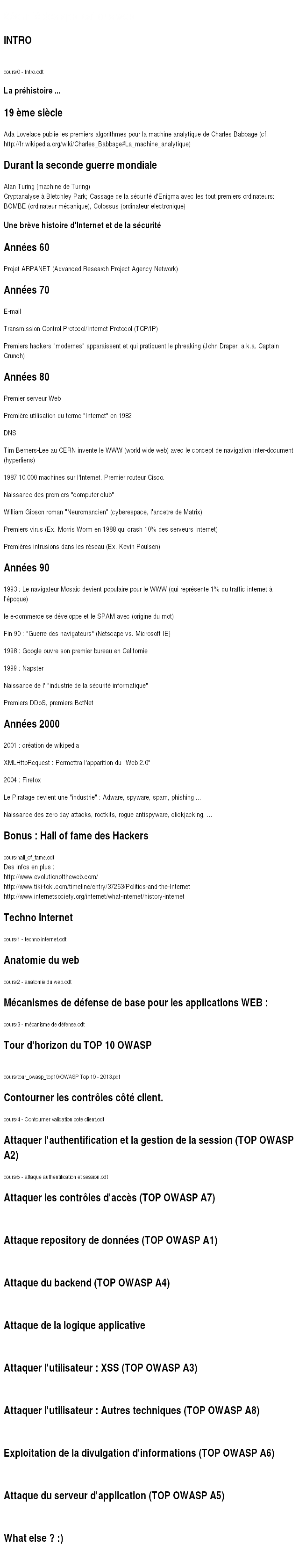 Sécurité des applications web INTRO cours/0 - Intro.odtLa préhistoire ... 19 ème siècle Ada Lovelace publie les premiers algorithmes pour la machine analytique de Charles Babbage (cf. http://fr.wikipedia...