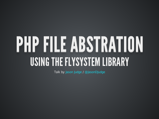 PHP File Abstration using the Flysystem library Talk by Jason Judge / @JasonDJudge Overview Accessing files (traditional PHP) Why abstract Introducting Flysytem ...